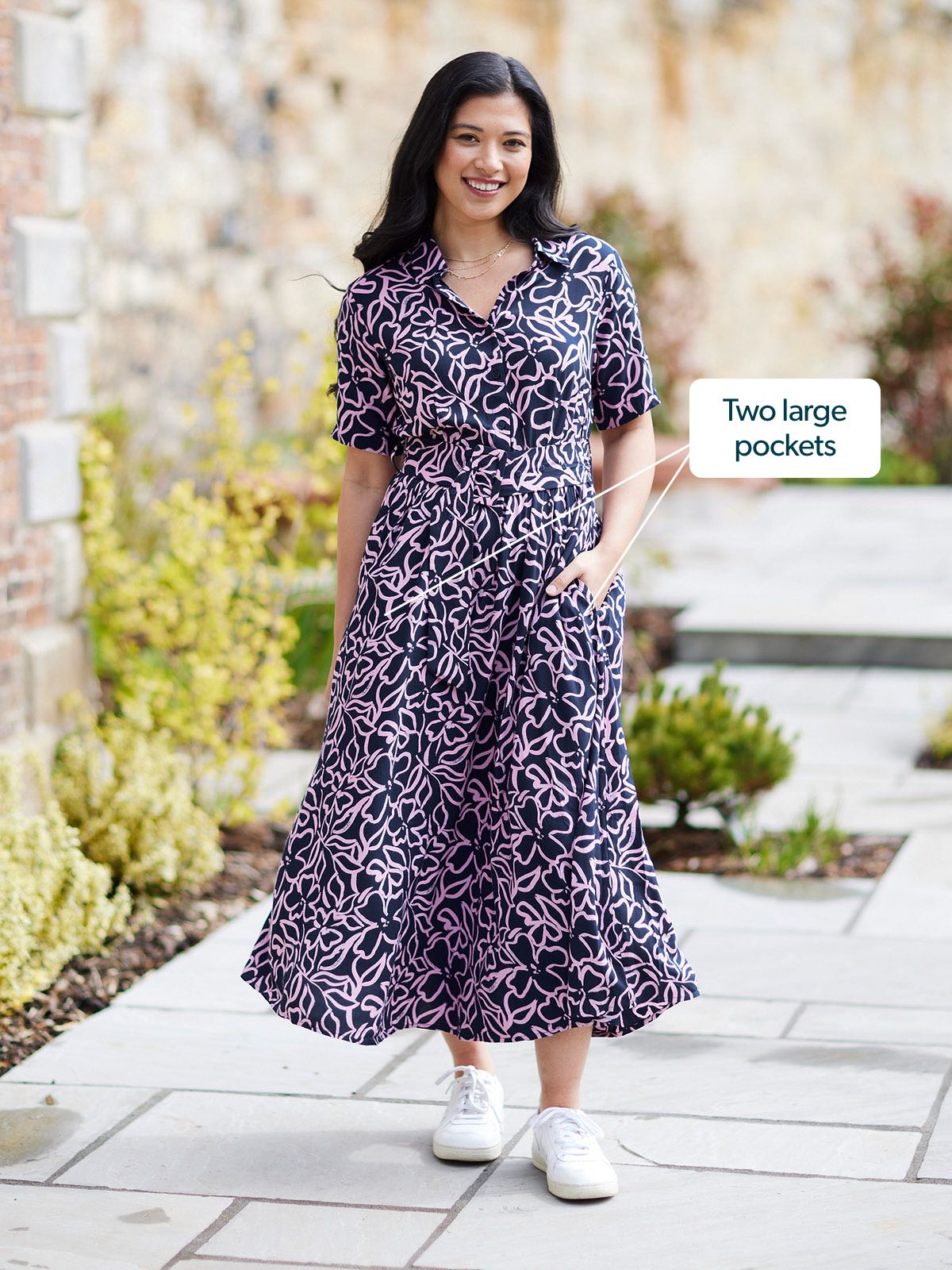 Made in a gorgeous, drapey woven sustainable viscose fabric, this versatile shirt dress buttons to the waist and has a detachable material belt to cinch and accentuate. With an elasticated waistband, floaty skirt and those all important pockets - Camilla is a stunning, wear-all-day dress that will take you from work to dinner and everywhere else in between!